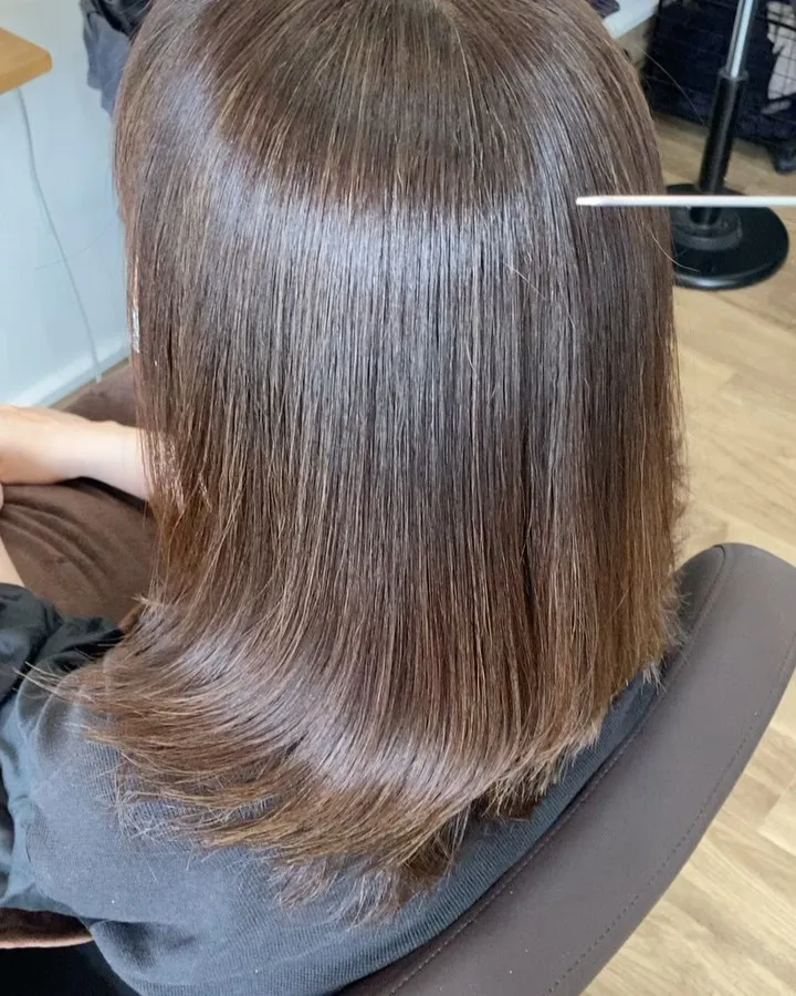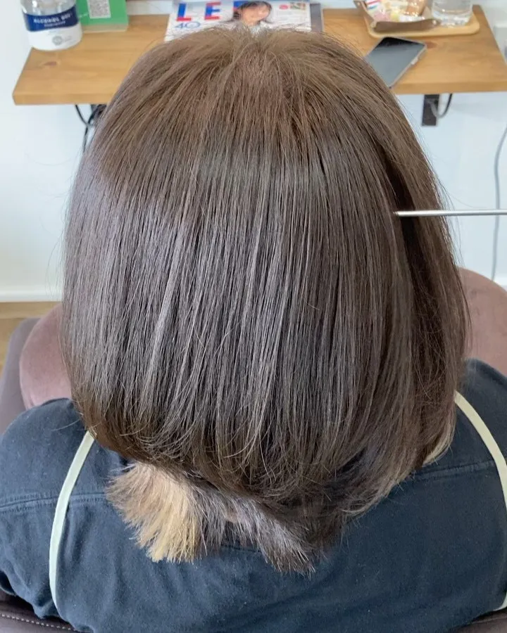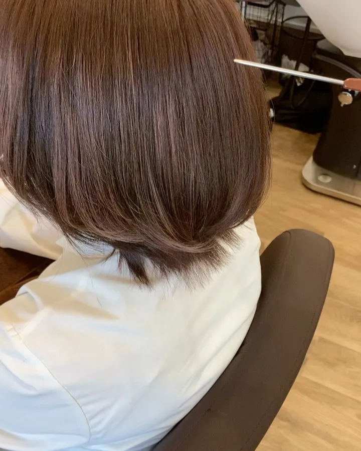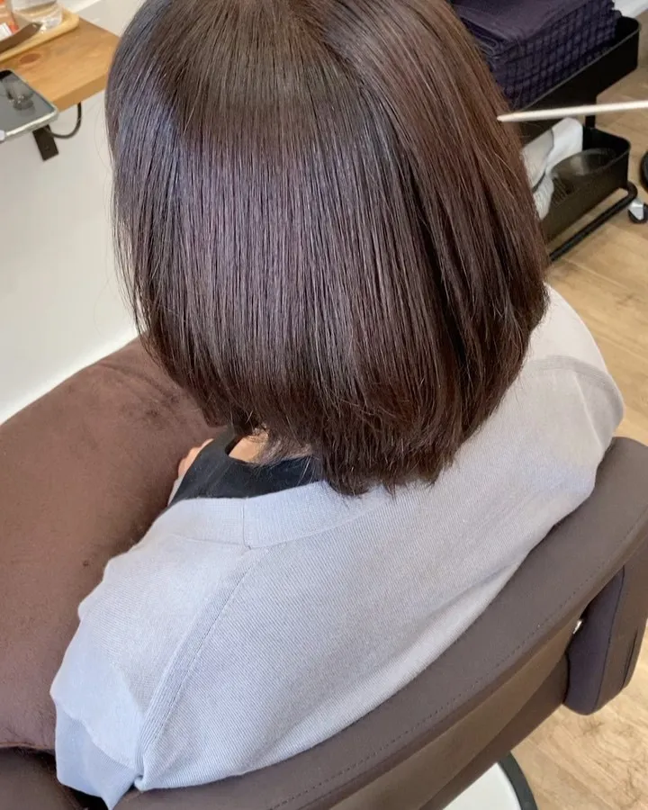 ナチュラルショートボブ✨エイジングのパヤパヤ・うねりと白髪の対応にお悩みのゲストでした😌ネオメテオストレートで優しく・柔らかさを。透明感あるカラーリングで艶と軽さを。カットで首筋をほっそり美…